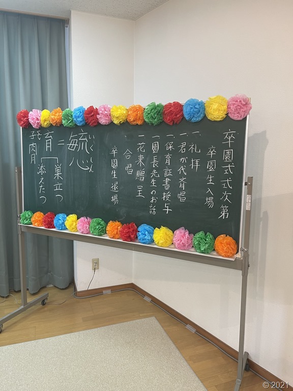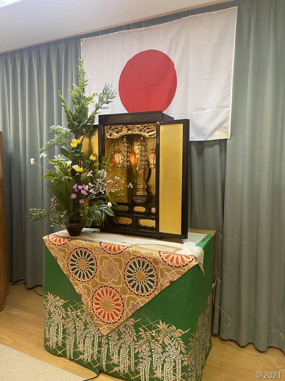 仏式での卒園式です。正面にはお仏壇と立華が供えられました。
