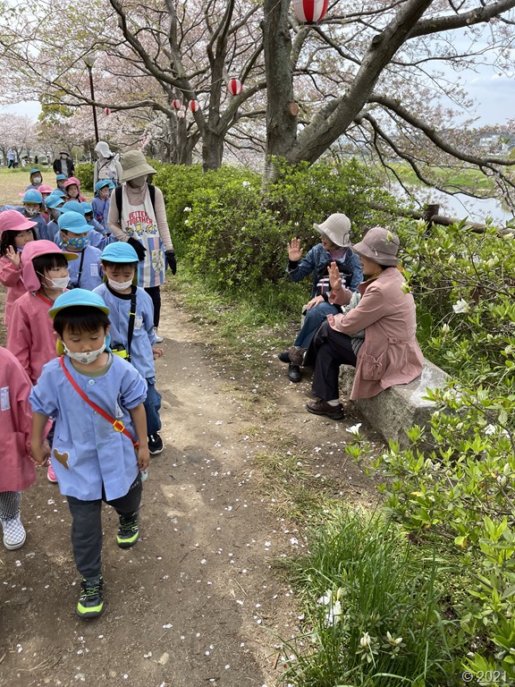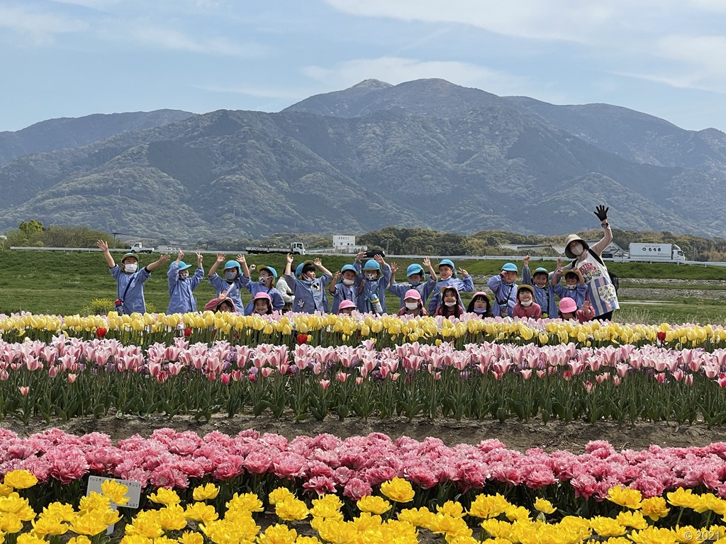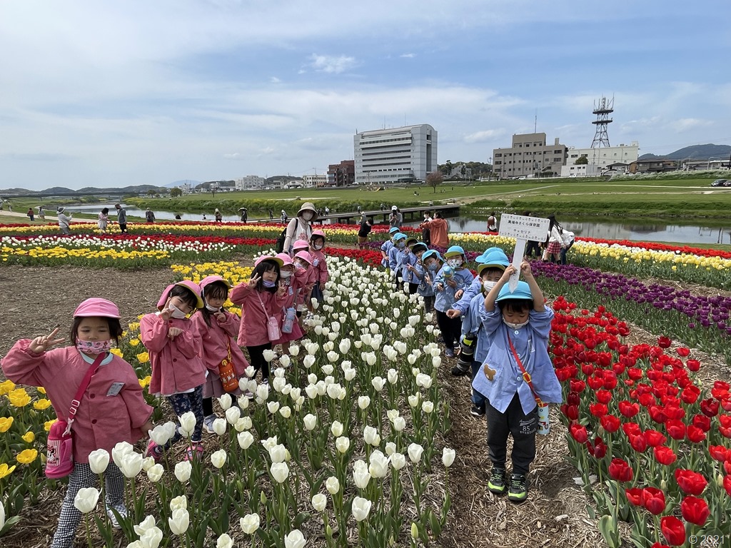 4月4日 年長組は河川敷にちゅうりっぷ祭りに行ってきました。
